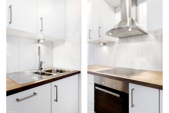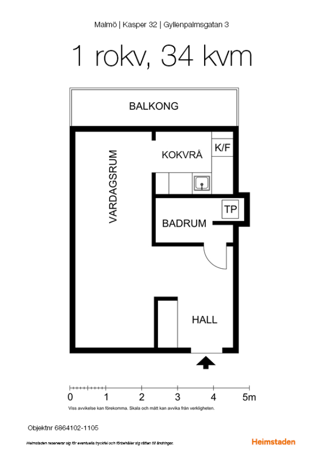 Välkommen till en ljus och välplanerad etta som nås smidigt med hiss. Kokvrån nås från rummet och är utrustad med vita köksluckor, glashäll och diskmaskin som förenklar vardagen. Hallen erbjuder god förvaring genom garderob.