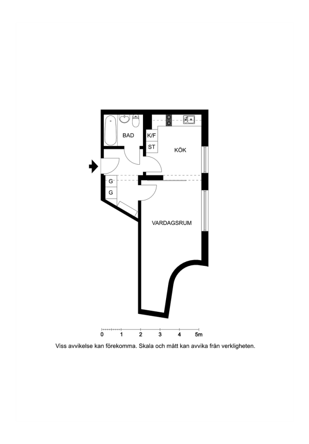 Utöver detta erbjuder lägenheten ett större allrum med plats för säng och övrigt möblemang.