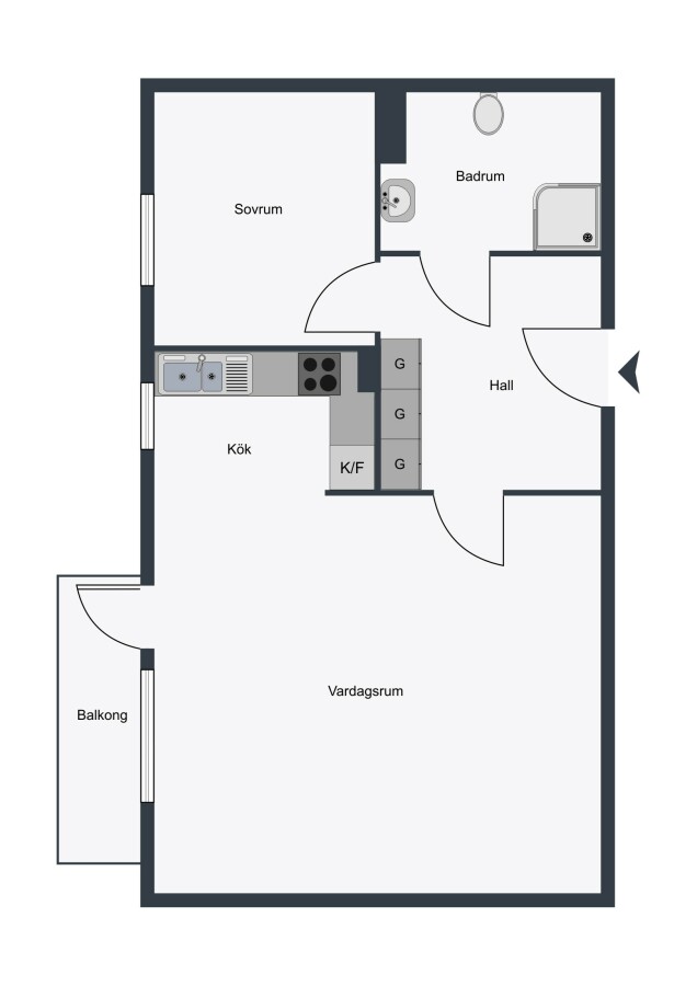 Antal rum: 2 rum och kök