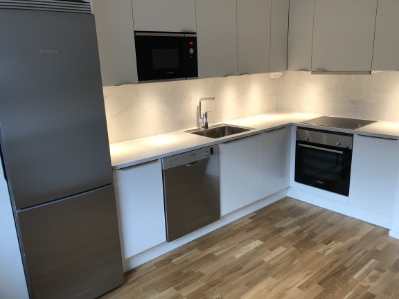 Nu har vi nöjet att presentera denna rymliga etta på 43 kvm belägen på plan ett utan hiss. Inbjudande planlösning med härligt ljusinsläpp samt balkong. Bostaden har ett stilrent kök från HTH med vita luckor och förvaring i både över- och underskåp och bra arbetsyta. Vitvaror från Bosch inkl diskmaskin. Här ryms också ett matbord. Badrummet är stilrent med vitt kakel och ljust klinkers. Utrustat med badkar, handdukstork, golvvärme (el) och wc. Vardagsrummet är rymligt och fönsterna släpper in gott om ljus till bostaden samt utgången till bostadens balkong. Samtliga väggar, tak och snickerier i bostaden är målade i stilrent vitt och på golven finns klassisk ekparkett. Vid entrén är det klinkers.
