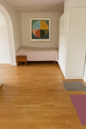 Vardagsrummet utgör bostadens hjärta, med gott om plats för både soffgrupp och annan möblering. Mellan hallen och vardagsrummet finns dessutom en idealisk yta för en sovalkov – perfekt för att skapa en tydlig sovdel.