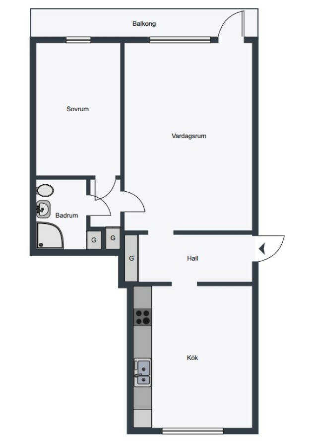 Lägenheten är belägen på andra våningen och erbjuder en trivsam planlösning med fönster i två väderstreck. Balkongen och sovrummet vetter mot Pilgatan, vilket ger ett fint ljusinsläpp och utsikt mot gatan. Köket vetter mot den lugna innergården, med loftgång utanför. Köket är praktiskt och utrustat med kyl/frys, spishäll och diskmaskin – allt för en smidig vardag. Vardagsrummet är rymligt och passar utmärkt för både avkoppling och socialt umgänge. Sovrummet har gott om plats för både säng och förvaring. Badrummet är helkaklat och utrustat med dusch.