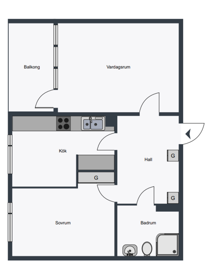Antal rum: 2 rum och kök