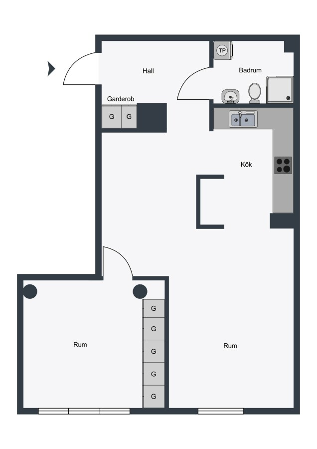 Antal rum: 2 rum och kök