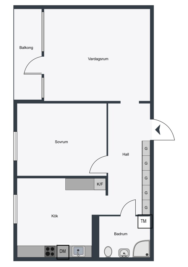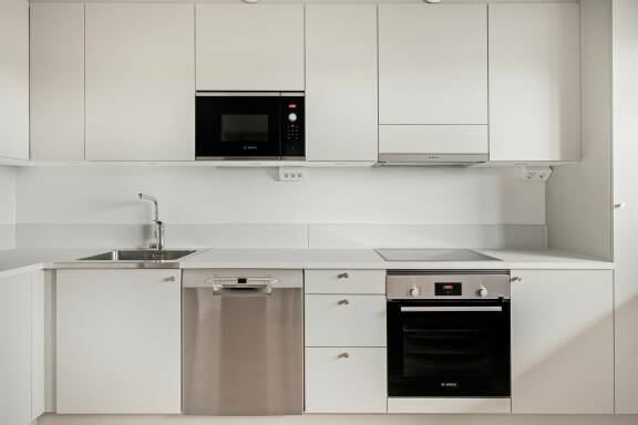Lägenheten erbjuder en välplanerad planlösning med generösa ytor och ett fint ljusinsläpp. Här möts du av vita väggar och genomgående ekparkett som skapar en enhetlig och modern känsla. Det stilrena köket går i en elegant beige ton och är utrustat med induktionshäll, inbyggd ugn, mikrovågsugn, fläkt, kyl/frys samt diskmaskin. Kombinationen av funktionalitet och design gör köket till en naturlig samlingspunkt i hemmet. Vattenbesparande blandare bidrar dessutom till en mer hållbar vardag. Badrummet är helkaklat i neutrala färger med matchande klinkergolv. Här finns golvvärme, dusch med glasväggar, rymlig kommod samt både tvättmaskin och torktumlare – praktiska bekvämligheter som förenklar vardagen. Vardagsrummet erbjuder gott om plats för både soffgrupp och matplats och bjuder på ett fint ljusinsläpp. Härifrån nås den trevliga balkongen med utsikt över området – en perfekt plats för avkoppling. Lägenheten har även ett rogivande sovrum med goda möbleringsmöjligheter.