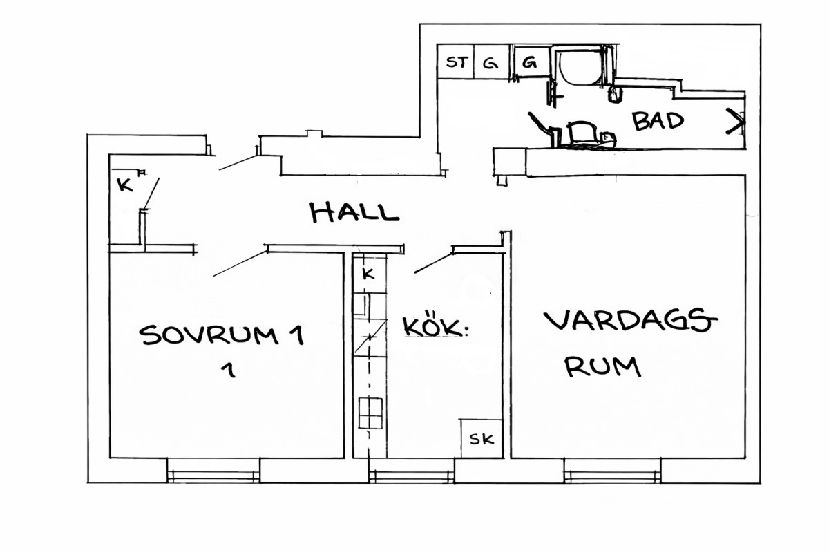 Här erbjuds en välplanerad bostad som renoverades 2022. Inbjudande planlösning med härligt ljusinsläpp samt väl tilltagna rum. Köket är praktiskt med fräscha vita luckor, gott om förvaring i skåpen, svart bänkskiva i laminat och svart kakel. Utrustningen består av spis,ugn och kyl/frys, och på golvet ligger parkett. Badrummet är helkaklat i stilrent utförande med vitt kakel och ljust klinkers. Utrustat med dusch, handdukstork (el), kommod och golvvärme (el). Vardagsrummet är rymligt och fönsterna släpper in gott om ljus till bostaden. Vidare erbjuds ett väl tilltagit sovrum. Samtliga väggar, tak och snickerier i bostaden är målade i vitt och på golven finns klassisk ekparkett. Hallen erbjuder tre stycken garderober och vid entrén är det klinkers. Utöver detta har du ett sovrum med plats för säng och övrig möblemang.