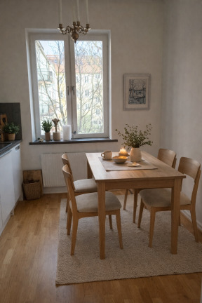 Lägenheten präglas av ett härligt ljusinsläpp och en trivsam atmosfär. De moderna ytskikten och de noggrant utvalda materialen skapar en stilren och tidlös känsla genom hela bostaden.