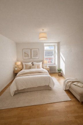 • Parkettgolv och ljus strukturtapet