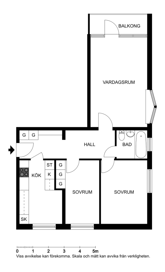 Nu har vi nöjet att presentera denna rymliga trerummare om 70 kvm belägen på plan tra. Inbjudande planlösning med härligt ljusinsläpp samt balkong. Badrummet är stilrent med svart klinkers på golvet och vitkaklade väggar. Utrustningen består av badkar, wc och kommod. Köket når du via hallen och här har du goda arbets- och förvaringsytor. Köket är utrustat med ugn, induktionshäll, diskmaskin och kyl/frys. Storleken på köket lämnar plats åt ett matbord.