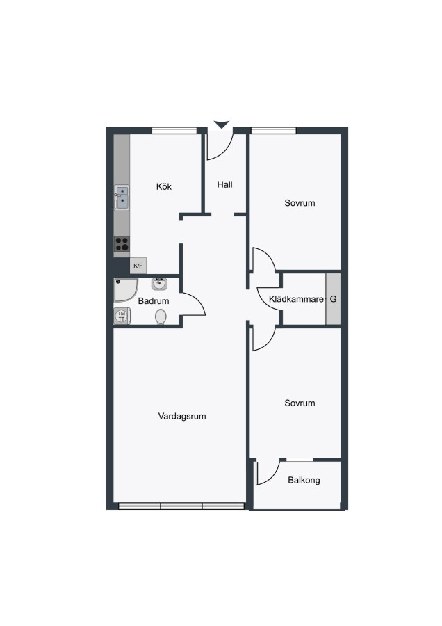 Du möts av en praktisk hall med goda avhängningsmöjligheter. Vidare öppnar bostaden upp mot ett luftigt vardagsrum med stora fönsterpartier som släpper in ljus. Här finns gott om plats för både soffhörna och matsalsdel – perfekt för såväl avkoppling som umgänge. Köket är smakfullt inrett med vita luckor, goda arbetsytor och matplats. Utrustningen är komplett med moderna vitvaror inklusive diskmaskin. Badrummet är helkaklat med dusch, tvättpelare och handdukstork. Sovrummen rymmer säng och övrigt möblemang utefter behov. Via de ena sovrummet kommer du ut till balkongen som är belägen ut mot Fågelbacksgatan.