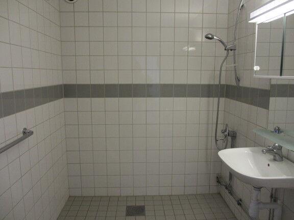 Bostaden har parkettgolv i vardagsrummet som skapar en varm och inbjudande känsla. Det helkaklade badrummet är utrustat med dusch. Köket erbjuder kyl/frys, gott om förvaringsutrymme samt plats för en mindre matgrupp.