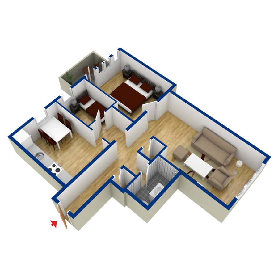 • Lägenheten hyrs ut i befintligt skick. Planlösningen kan skilja sig från verkligheten.