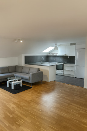 Välkommen till denna unika och luftiga tvårumslägenhet med snedtak, stora ytor och en modern, öppen planlösning mellan kök och vardagsrum. Här bor du högst upp i huset med gott ljusinsläpp, charmig karaktär och genomtänkta materialval.