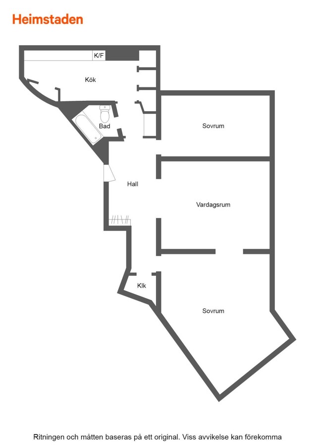 - Planlösningen kan skilja sig från verkligheten. Denna bostad har inte badkar.