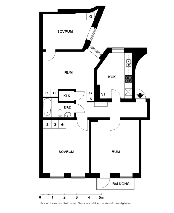 Två rum i fil - ett av rummen har en vacker kakelugn (ej eldningsbar). Båda rummen vetter mot gatan, vilket ger fint ljusinsläpp. Köket och de två övriga rummen vetter mot gården och skapar en lugn atmosfär. Det ena rummet gås igenom för att nå det andra. Köket renoverades 2022 med nya vitvaror (diskmaskin, mikro, kyl/frys, ugn och spishäll). Samma år lades även nytt ekparkettgolv in i köket, och de gamla brädgolven i vardagsrum/sovrum slipades upp. Väggar, tak och snickerier målades vilket ger en fräsch och genomtänkt finish. Badrummet helkaklades vid renovering 2017 och utrustades med badkar.