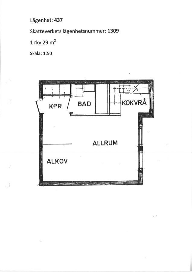 Trevlig lägenhet på 1 rum och kokvrå i centralt läge.