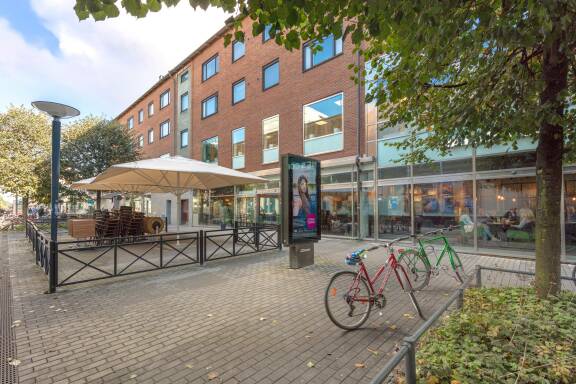 Runt hörnet finns ett brett utbud av caféer, restauranger, bibliotek, biograf och blomsterhandel. I porten bredvid hittar du dessutom ett shoppingutbud med över 140 butiker, vilket gör vardagen både enkel och inspirerande. Läget passar perfekt för dig som vill ha ett levande cityliv med närhet till allt.
