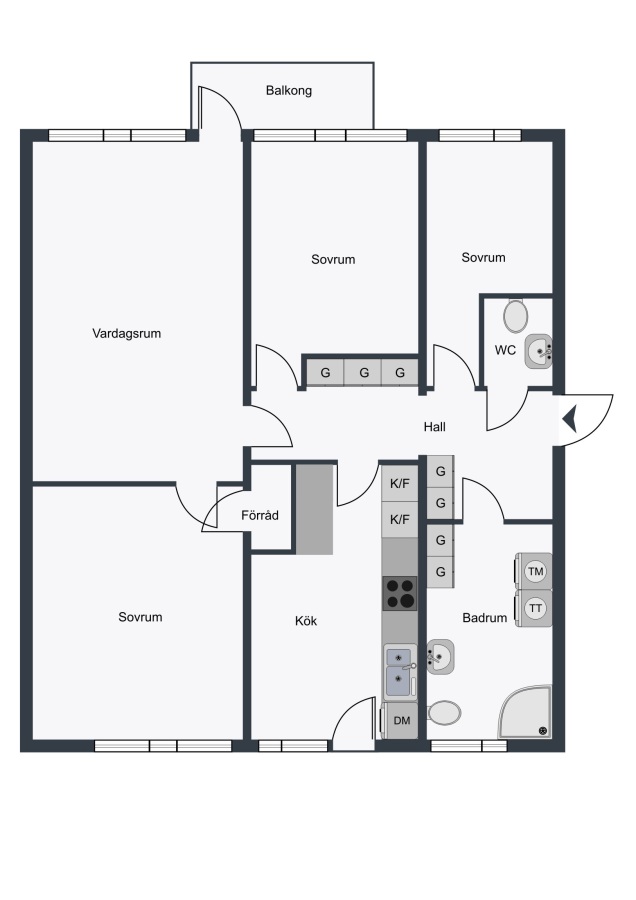 Välplanerad 4:a med inglasad balkong på Storskogsvägen 23