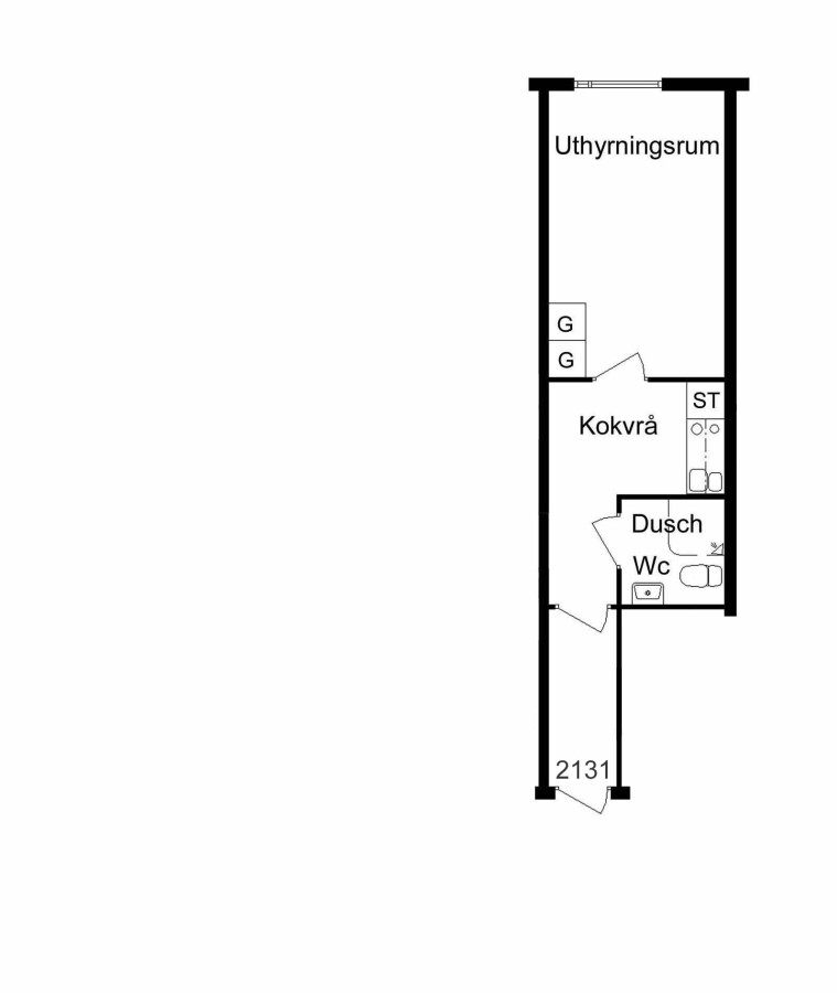 Lägenhet nr 2131 på våning 2. Denna lilla lägenhet är passande för dig som söker en övernattningslägenhet. Kokskåp med två plattor finns, ugn saknas. Förråd och balkong finns ej.