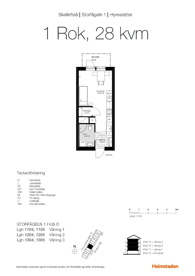 Välkommen heim till en nyproducerad 1:a. I entrén möts du av öppen planlösning med klinkergolv. Väggarna är målade i ljusgrå nyans och golvet kläs i fin ekparkett från Kährs. Lägenheterna har ljust stilrent kök från Marbodal. Vitvaror som diskmaskin, kyl och frys samt ugn och spis med keramikhäll. Badrummet kläs i kakel och klinkers, handdukstork och duschhörna med glasade väggar. Egen tvättutrustning ingår också i bostaden.