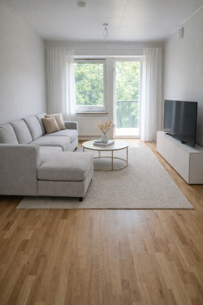 Välkommen hem till en nyproducerad tvårumslägenhet med modern komfort och genomtänkta materialval. Redan i entrén möts du av en öppen och inbjudande planlösning med klinkergolv som övergår i vacker ekparkett från Kährs. Väggarna är målade i en ljusgrå nyans som ger bostaden ett stilrent och harmoniskt uttryck.