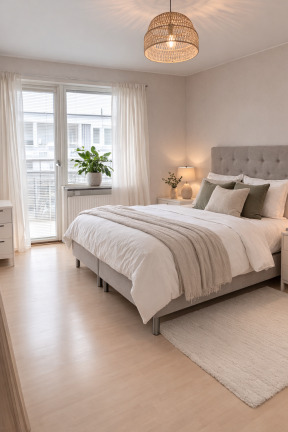 Avvikelser från planritning kan förekomma. Vissa bilder kan vara digitalt förbättrade med hjälp av AI-teknik för att ge en tydligare och mer representativ bild av bostaden. Smärre justeringar såsom ljussättning, borttagning av stök eller visuell städning kan förekomma. Färg, ytskikt och inredningsdetaljer kan därför avvika något från verkligheten.