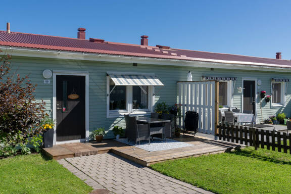 Gavellägenhet i absoluta markplan. Uteplats mot söder.