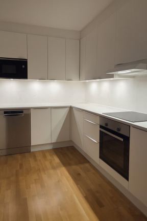 Lägenheten har helrenoverats 2022 och fått ett nytt kök med vita luckor från HTH. Nya vitvaror inkl. diskmaskin, mikrovågsugn, spis med induktionshäll och varmluftsugn. Badrummet är helkaklat och klinker med golvvärme samt dusch, kommod, handdukstork, nytt porslin och badrumsskåp samt tvättmaskin och torktumlare.