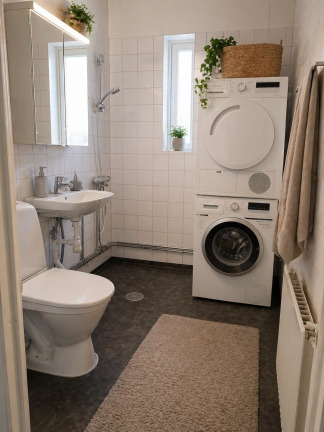 - Lägenheten är utrustad med tvättmaskin och torktumlare