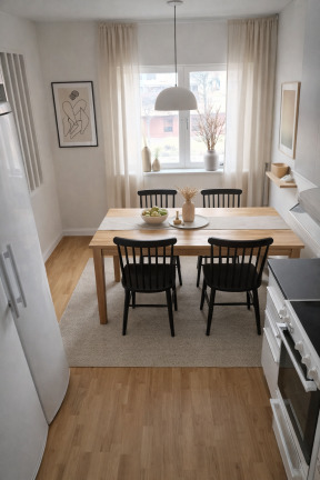 Denna smakfulla gavellägenhet renoverades 2018 och erbjuder ett bekvämt och stilrent boende där varje detalj är noga genomtänkt. Köket är modernt med vita luckor från JKE och utrustat med diskmaskin, spishäll och varmluftsugn. Badrummet är helkaklat med klinkergolv, golvvärme, dusch, kommod, handdukstork och badrumsskåp. Komfortvärme finns i hall och badrum. Lägenheten har dessutom gott om förvaringsutrymmen samt en balkong i söderläge med utsikt mot grönområde, vilket ger ett härligt ljusinsläpp och en lugn atmosfär.