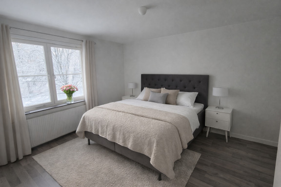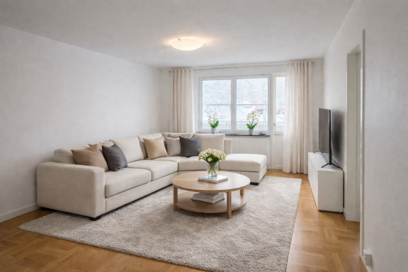 Avvikelser i planritningar kan förekomma. Observera att vissa bilder kan vara digitalt förbättrade med hjälp av AI-teknik för att ge en tydligare och mer representativ bild av bostaden. Mindre justeringar kan förekomma, till exempel förändrad ljussättning, borttagning av stök eller visuell städning. Färg, ytskikt och inredningsdetaljer kan därför avvika något från verkligheten.