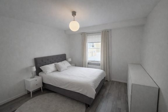 Lägenhet, med ett nyrenoverat badrum 2023.