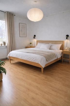 Köket är utrustat med vita luckor från JKE och moderna vitvaror, inklusive diskmaskin, induktionshäll och varmluftsugn. Badrummet är helkaklat med klinkergolv och golvvärme samt utrustat med dusch, kommod, handdukstork, tvättmaskin och torktumlare.