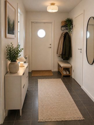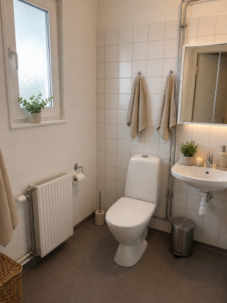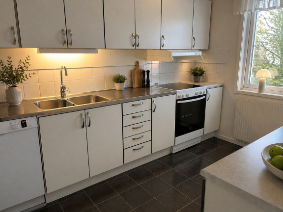 - Avvikelser i planritningar kan förekomma. Vissa bilder kan vara digitalt förbättrade med hjälp av AI-teknik för att ge en tydligare och mer representativ bild av bostaden. Smärre justeringar såsom ljussättning, borttagning av stök eller visuell städning kan förekomma. Färg, ytskikt och inredningsdetaljer kan därför avvika något från verkligheten.