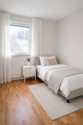 Observera att vissa bilder kan vara digitalt förbättrade med hjälp av AI-teknik för att ge en tydligare och mer representativ bild av bostaden. Smärre justeringar såsom ljussättning, borttagning av stök eller visuell städning kan förekomma.