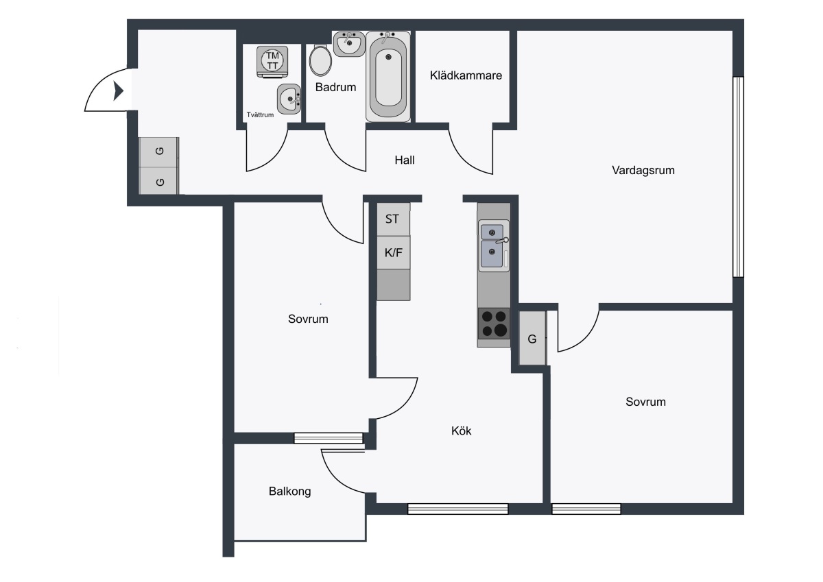 Bilderna är exempelbilder och är fotograferade i en lägenhet med liknande planlösning. Detaljer i bilderna kan skilja sig från den här lägenheten.