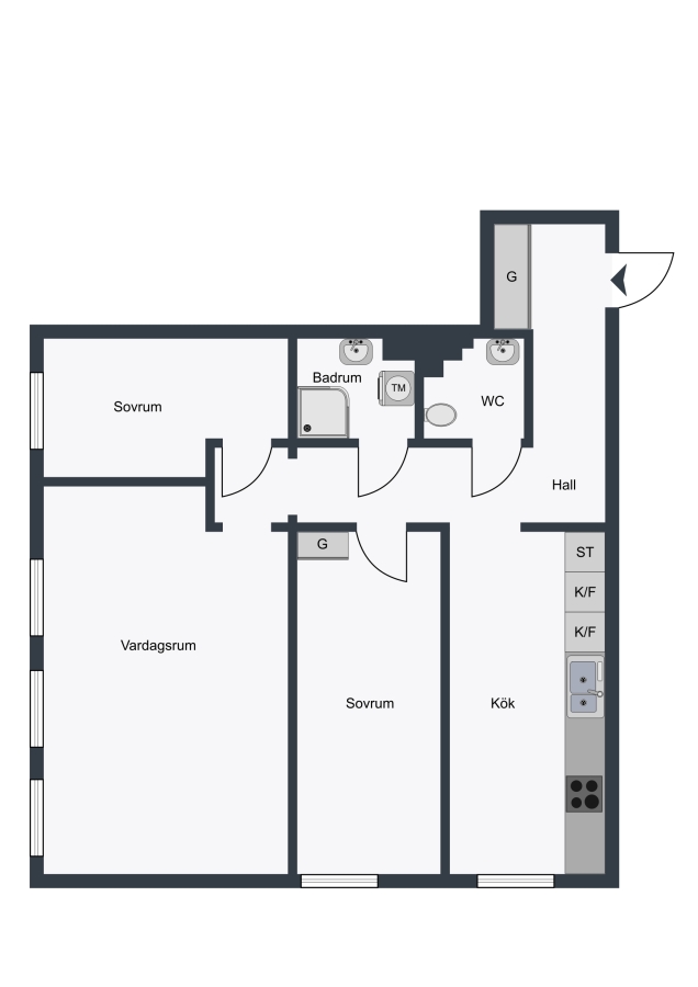 Bostaden erbjuder ett rymligt vardagsrum och två sovrum, vilket ger flexibilitet för exempelvis barnrum, gästrum eller hemmakontor.
