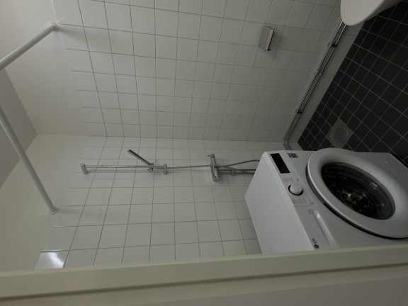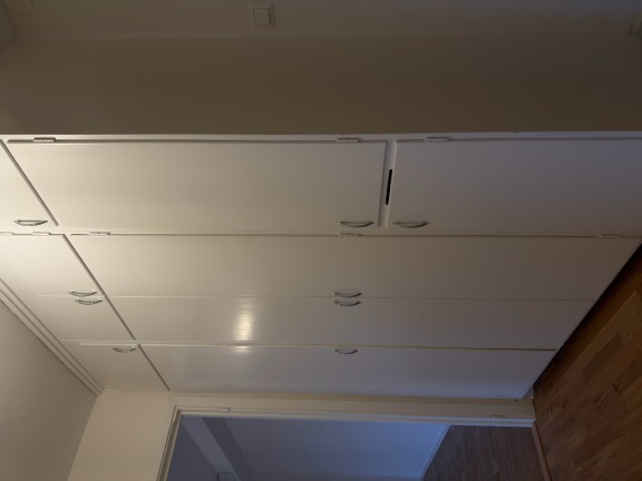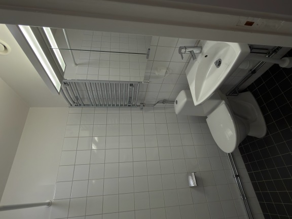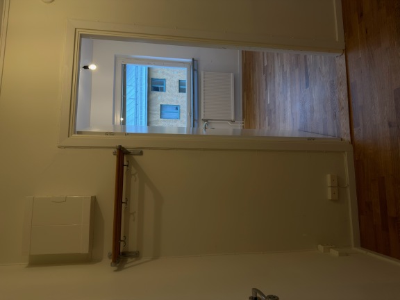 Lägenheten erbjuder ett stort och lättmöblerat vardagsrum med två fönster som släpper in rikligt med ljus. Hallen är utrustad med flera platsbyggda garderober i full höjd, vilket ger utmärkt förvaringsmöjlighet. Köket har en klassisk, ren design med bra arbetsytor och plats för matbord. Det fräscha badrummet är helkaklat och utrustat med både dusch och tvättmaskin.