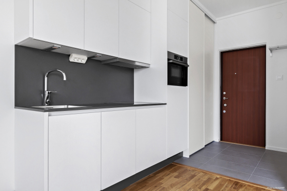Bostaden har en välplanerad planlösning med allrum och praktisk kokvrå. Köket är utrustat med diskmaskin samt kombinerad kyl och frys. I lägenheten finns även en kombinerad tvätt- och torkmaskin som förenklar vardagen. Badrummet är försett med golvvärme och bostaden har säkerhetsdörr för extra trygghet. Balkongen ger ett uppskattat extra utrymme för avkoppling. Till lägenheten hör vindsförråd, och cykelförråd finns i låst utrymme på gården. Fastigheten har postboxar och hiss.