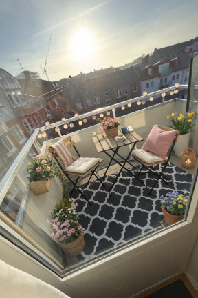 Från sovrummet når du balkongen med östligt läge – en perfekt plats för morgonkaffet i solen.