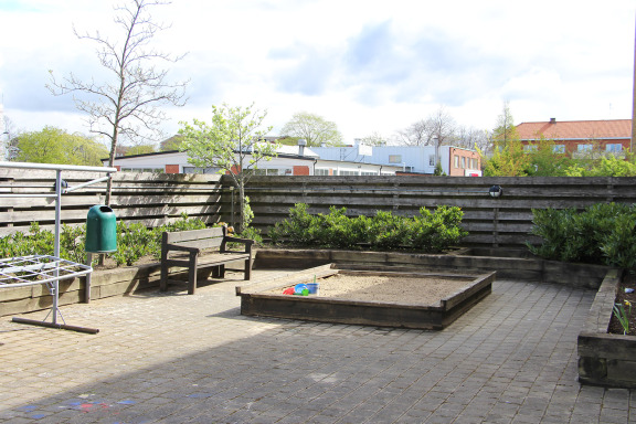 Miljöhus finns på gården. Tvättstugan finns i källaren.
