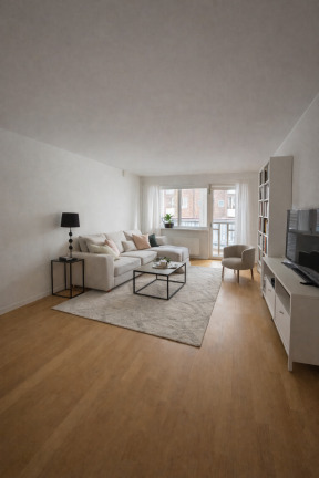 Sovrummen är lättmöblerade och vardagsrummet är rymligt med utgång till balkong i västerläge, perfekt för eftermiddags- och kvällssol.