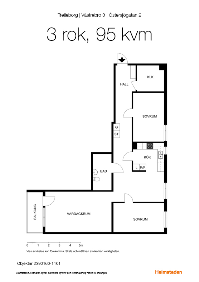 Rymlig 3-rummare om 95 kvm med balkong i västerläge