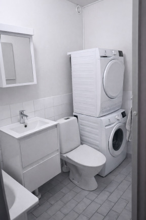 - Badrum med tvättmaskin och torktumlare