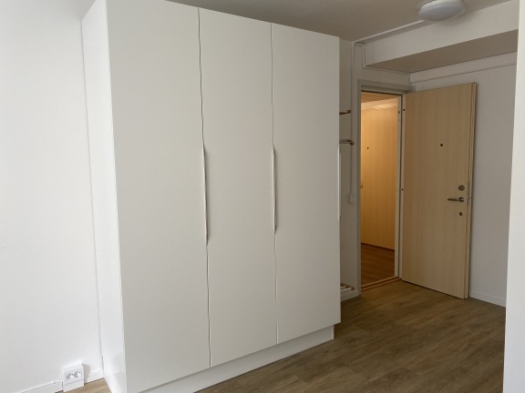 Köket är fullt utrustat och anpassat för ett smidigt studentliv, med induktionshäll, varmluftsugn, mikrovågsugn samt gott om förvaringsmöjligheter. I hallen finns tre rymliga garderober som ger bra förvaring.