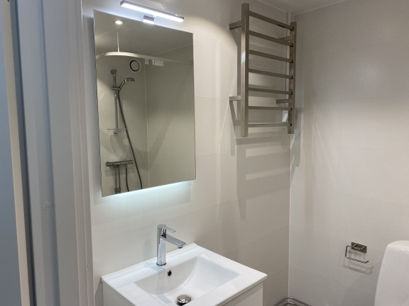 • Helkaklat badrum med dusch, golvvärme och handdukstork