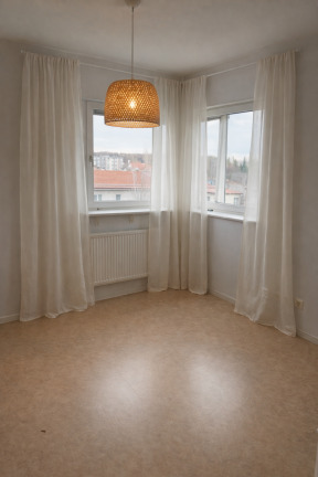 Lägenheten är belägen högt upp i huset med hiss, vilket ger en lugn och privat känsla. Den öppna planlösningen skapar ett luftigt intryck mellan kök och vardagsrum, och från köket nås den trevliga balkongen i östläge – en perfekt plats för morgonkaffet.