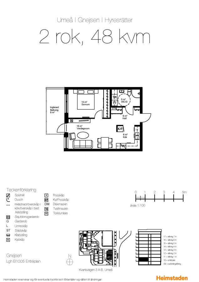 • Lägenheten är utrustad med tvättmaskin och torktumlare