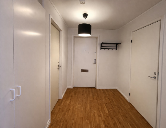 Lägenheten erbjuder en ljus och öppen planlösning där vardagsrummet blir en naturlig samlingspunkt. Härifrån når du även balkongen som vetter mot ett lugnt läge med förmiddagssol.