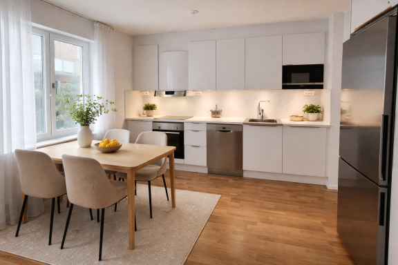 Här finns gott om arbetsyta och förvaring – perfekt för både vardag och sociala tillfällen.